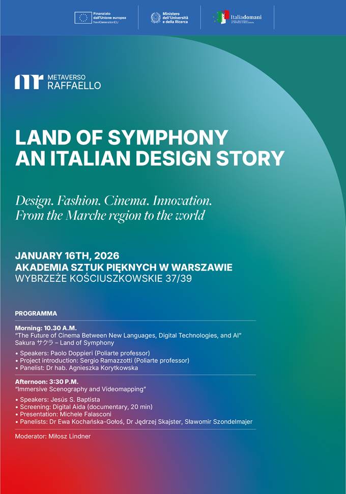 Mamy przyjemność gościć wykładowców z włoskiej uczelni Poliarte w Ankonie, którzy zaprezentują projekt LAND OF SYMPHONY AN ITALIAN DESIGN STORY