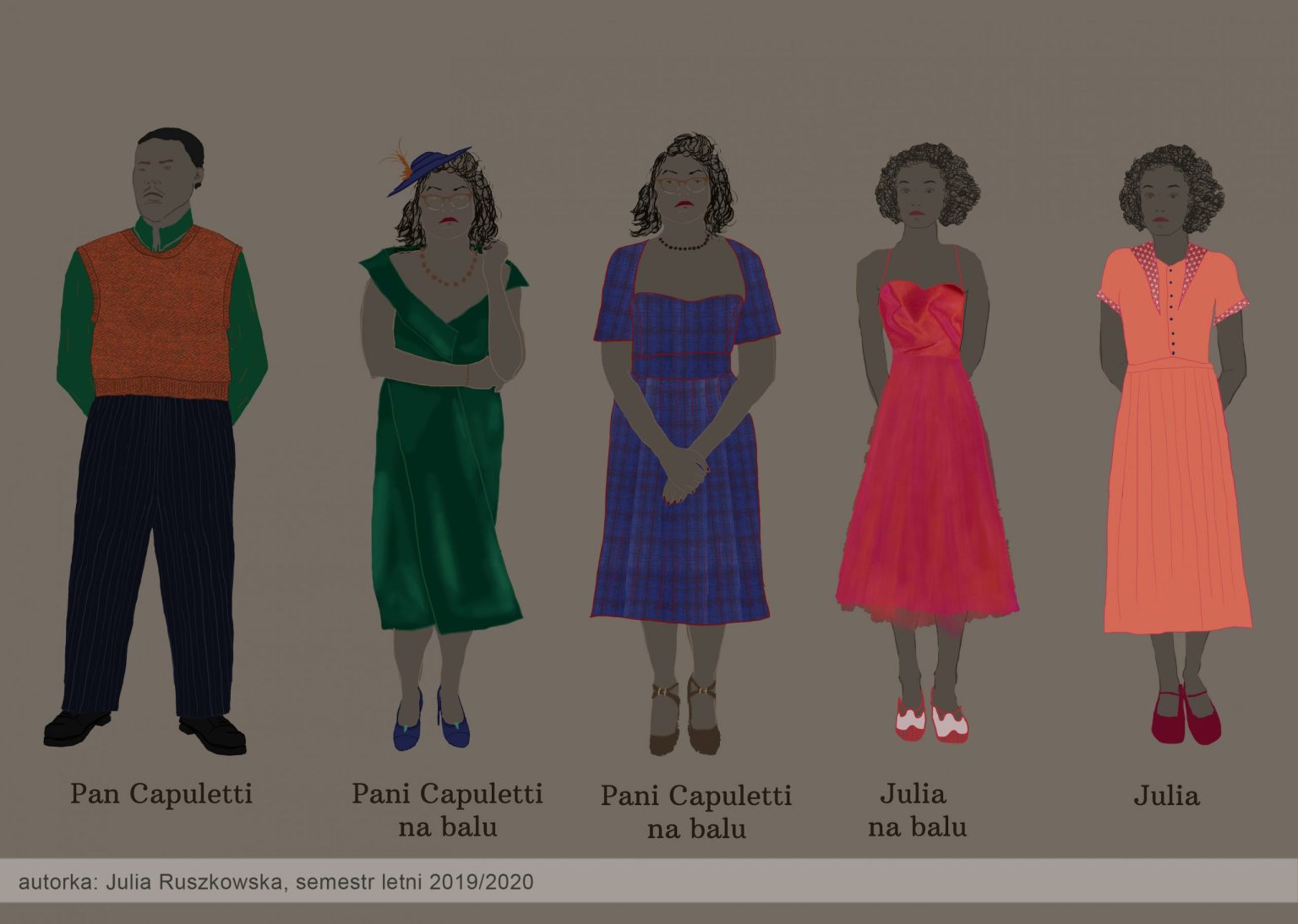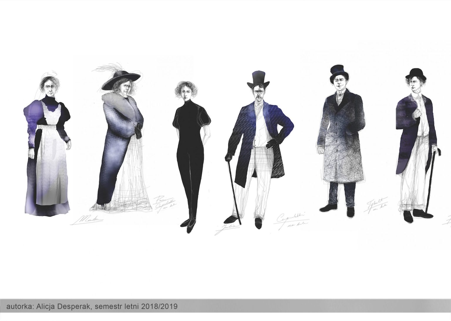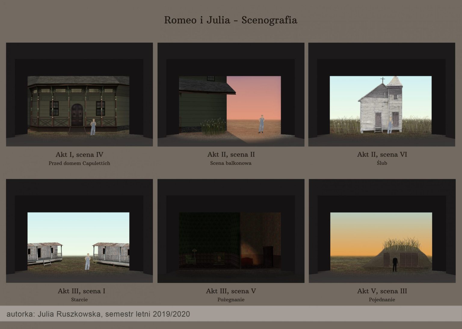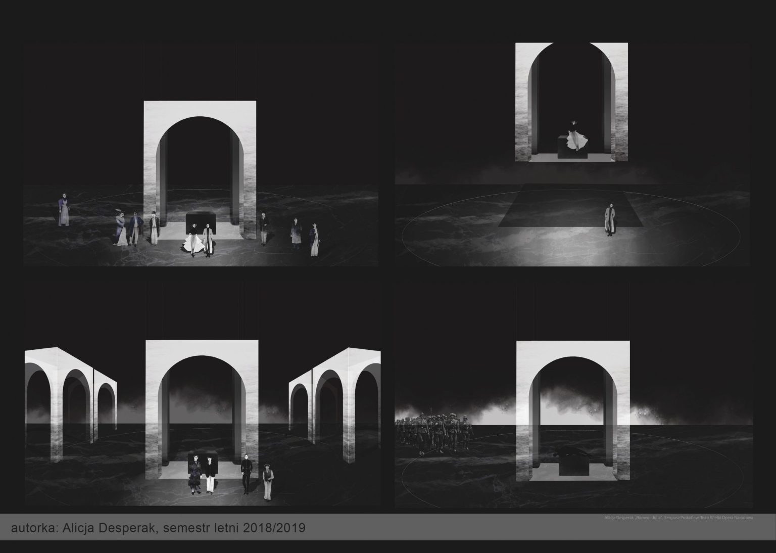 W pierwszym semestrze studenci przygotowują projekty przestrzeni i kostiumów na podstawie krótkiego tekstu literackiego. Podczas procesu projektowego uczą się zarówno twórczej interpretacji dzieła literackiego, jak i technik wykonania pełnego projektu scenograficznego.
