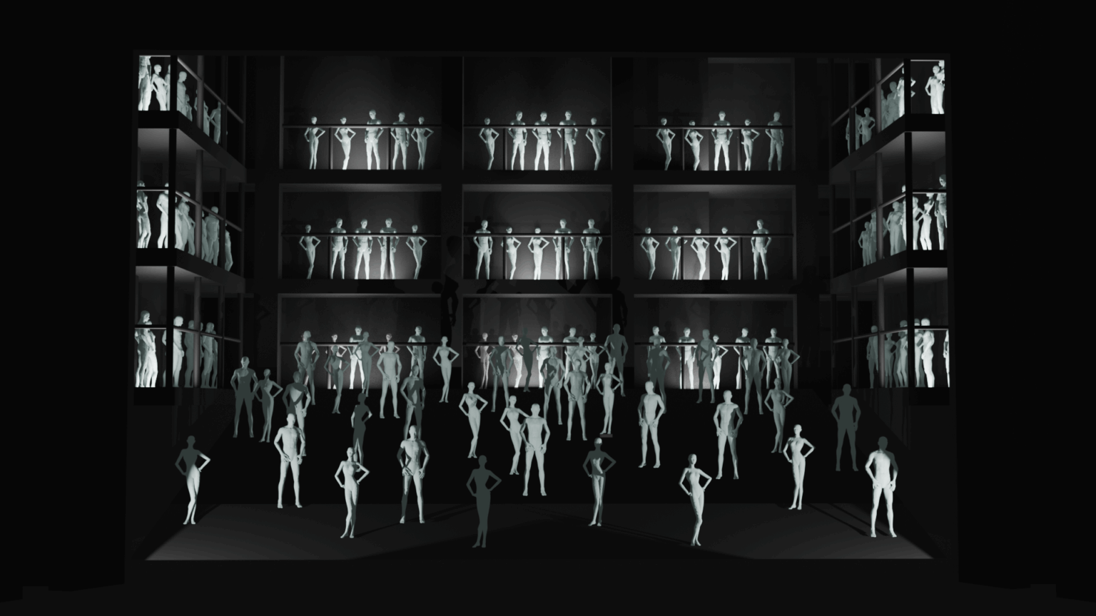 W pierwszym semestrze studenci przygotowują projekty przestrzeni i kostiumów na podstawie krótkich ćwiczeń rozwijających różnorodne aspekty warsztatu scenograficznego.